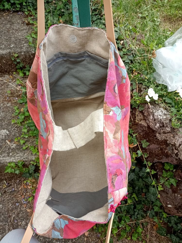 - un très beau coton d'ameublement "aux coquelicots" pour toute la partie supérieure du devant du sac.