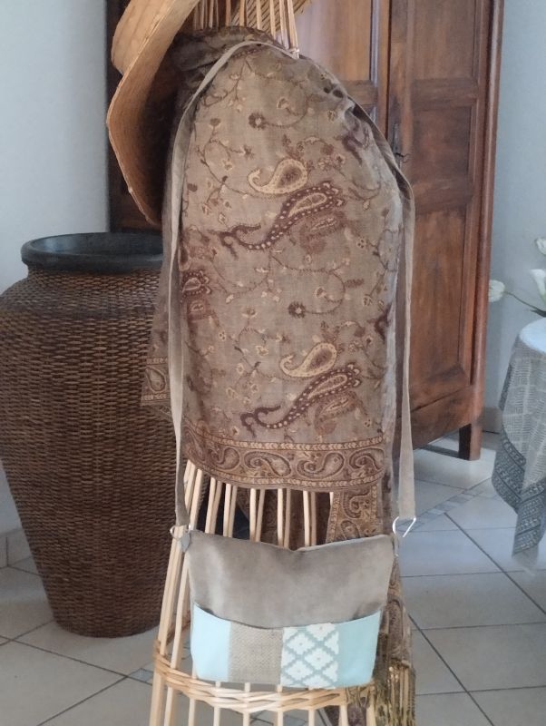Sac bandoulière pochette velours taupe vert pâle doublé