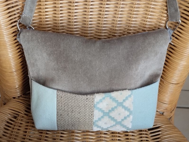 - un beau velours ras STOF de couleur taupe. Ce tissu compose l'intégralité du sac.